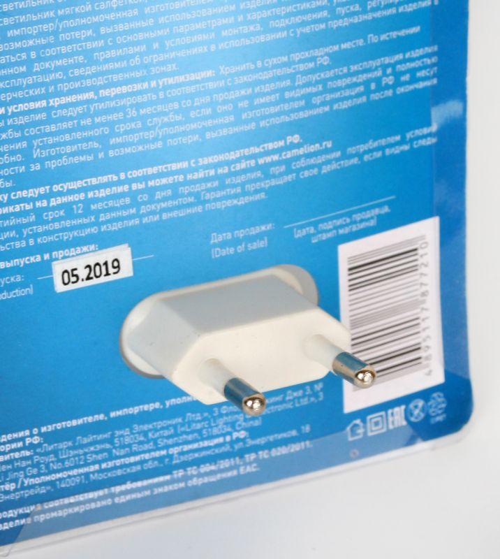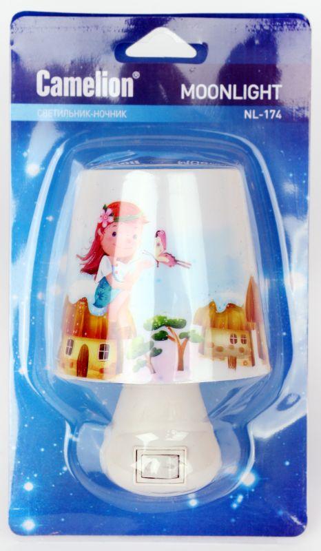 Светильник ночник предназначен для локальной подсветки в детских комнатах, спальнях, гостиных. Camelion NL-174 "Лампа", питание от сети 220В, размер 70х100х70мм, источник света - встроенные светодиоды, мощность 0,5Вт, кол-во светодиодов - 3, пластик.