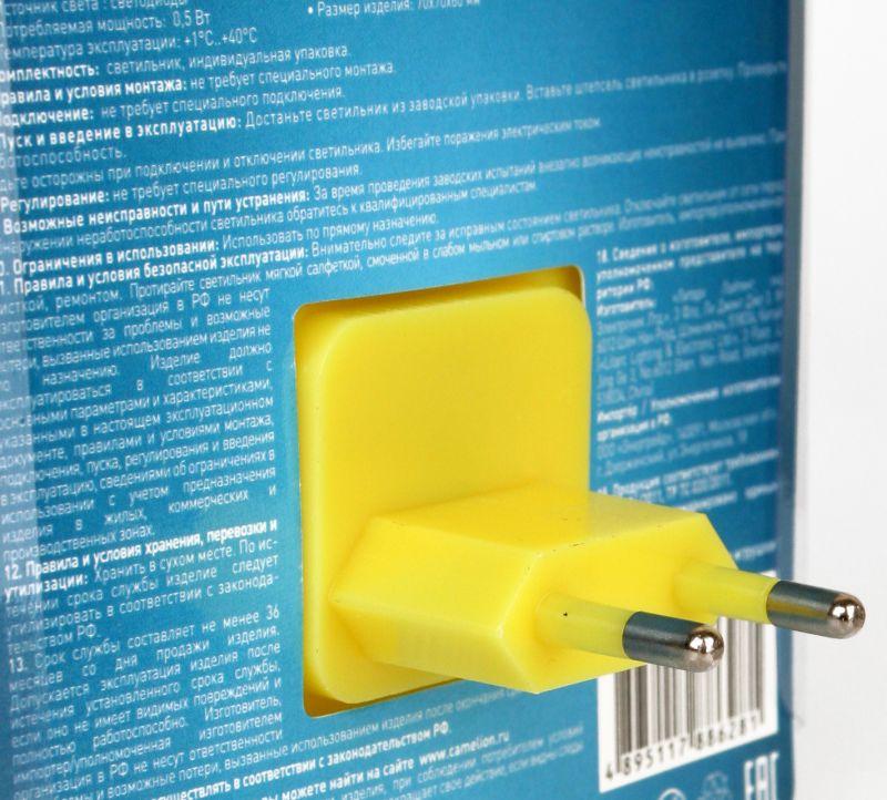 Светильник ночник предназначен для локальной подсветки в детских комнатах, спальнях, гостиных. Camelion NL-240 "Звезда", питание от сети 220В, размеры 70х70х60, источник света - встроенные светодиоды, выключатель на корпусе, пластик