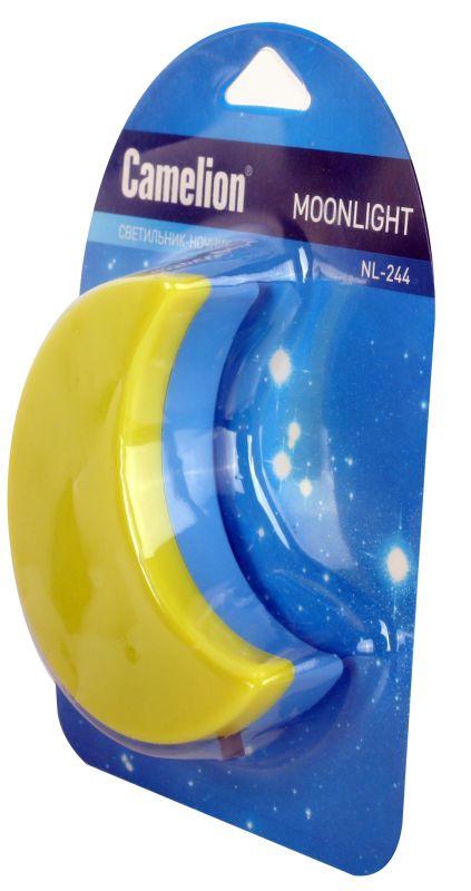 Светильник ночник предназначен для локальной подсветки в детских комнатах, спальнях, гостиных. Camelion NL-244 "Месяц", питание от сети 220В, размеры , источник света - встроенные светодиоды, выключатель на корпусе, пластик