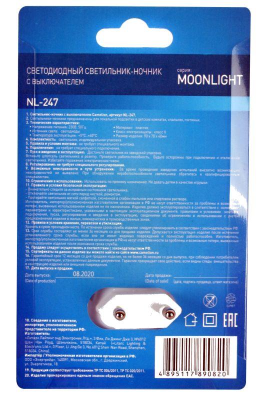 Светильник ночник предназначен для локальной подсветки в детских комнатах, спальнях, гостиных. Camelion NL-247 "Волан", питание от сети 220В, размеры , источник света - встроенные светодиоды, выключатель на корпусе, пластик