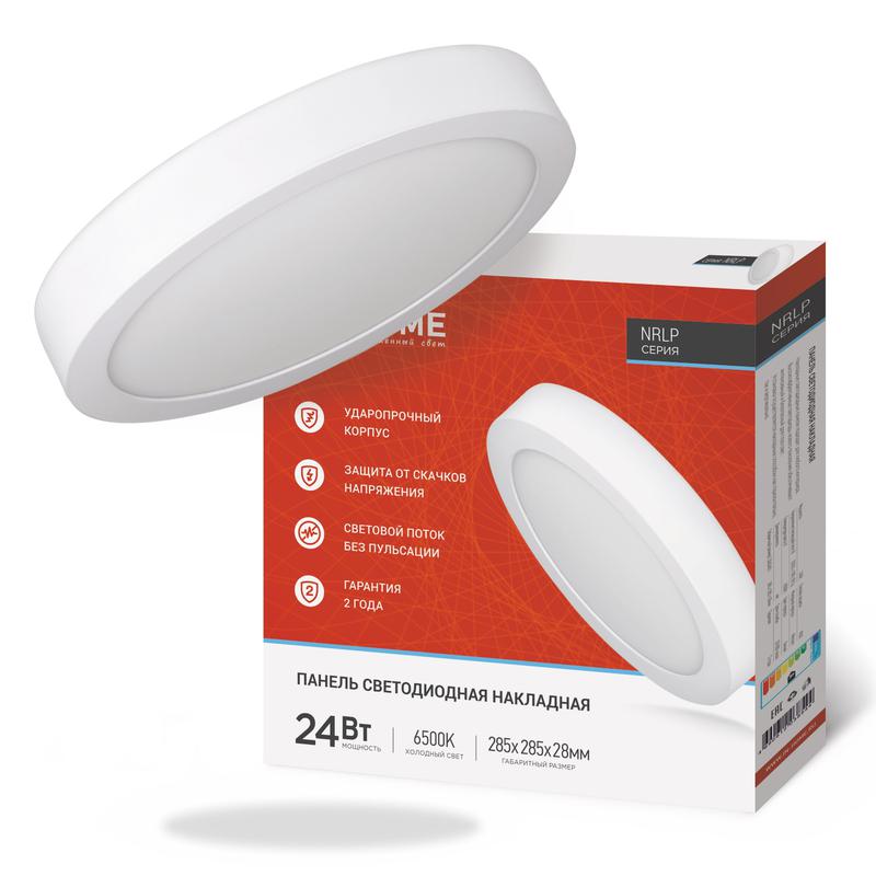 Светильник светодиодный NRLP 24Вт 6500К IP40 1680лм 230В 285мм круглый накладной панель бел. IN HOME 4690612038544
