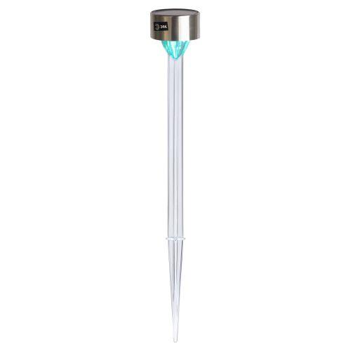 В светильнике уличном на солнечной батарее ЭРА ERASF22-47 "Радуга" (арт. Б0057653) установлен RGB-светодиод, подсвечивающий разными оттенками прозрачную ножку. Это грунтовый садовый светильник, который быстро и легко устанавливается в землю, гравий, газон. Встроенная солнечная батарея аккумулирует энергию естественного света в дневное время, превращая её в эффектную мультиколор-подсветку ночью. Светодиод автоматически начинает светить и менять цвета с наступлением вечера. Садовые светильники ЭРА "Радуга" особо удачны для оформления дорожек и входных групп, будут красиво смотреться у беседок, веранд, бань и любых загородных построек. Хорошее решение для сегмента horeca - помогут оформить территорию летних кафе, домов отдыха, гостиниц, отелей. Радужное свечение создаёт праздничное настроение и волшебную атмосферу за городом.