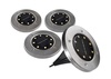 Комплект из 4-х ландшафтных светильников для установки в грунт. 8 стветодиодов, диаметр 11.6 см, IP44. Упаковка - цветная коробка.