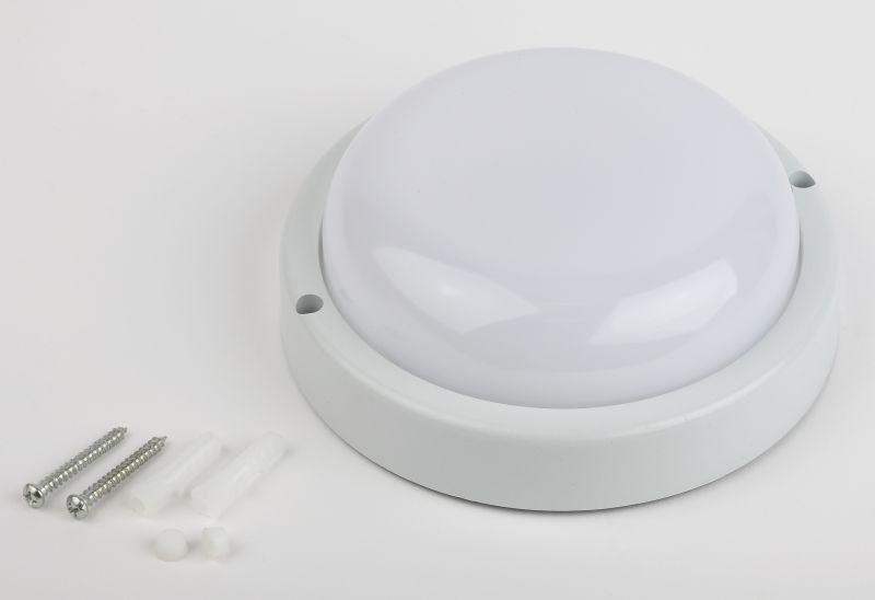 Пылевлагозащищённый LED-светильник IP65 круглой формы. Оснащён микроволновым датчиком движения. В случае отсутствия какого-либо движения, свет гаснет. Если время задержки, 20-25 секунд, еще не истекло и зафиксировано движение, тогда начинается новый отсчет. Светильники срабатывают на уровень освещенности. Порог срабатывания <20 лк. Когда в помещении светло, осветительный прибор не включится. Сверхчувствительный датчик способен обнаруживать объекты через препятствия (перегородки, окна, двери). Принцип срабатывания датчика основан на отражении электромагнитных волн от движущихся объектов. Светильники срабатывают на любое движение в радиусе действия 6-7м . Светит холодным белым светом, повышающим работоспособность и концентрацию внимания. Экономичная светодиодная технология сокращает до 80% расходов на оплату электричества. Этот светильник идеален для освещения блока ЖКХ, гаражей, балконов, а так же других помещений с повышенной влажностью.