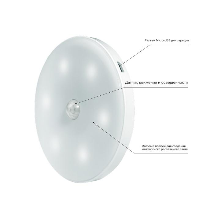 Светильник светодиодный TS8-L1W-Accu 6 LED беспроводной PIR-датчик магнитное крепление литиевый аккум. зарядка USB JazzWay 5037649