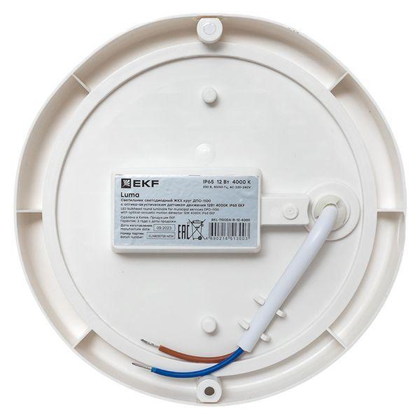 Светильник светодиодный ЖКХ ДПО-1100 12Вт 4000К IP65 круг с оптико-акустическим датчиком движения LUMA EKF BKL-1100DA-R-12-4000
