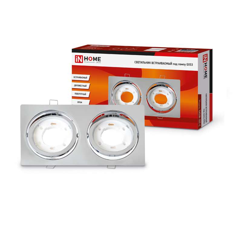 Светильник точечный GX53R-2ST 2RC GX53 IP20 230В встраив. поворотн. двойн. метал. хром. IN HOME 4690612021560