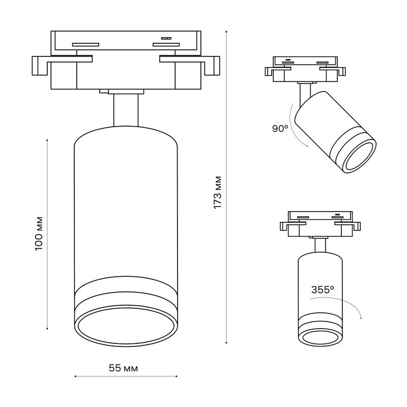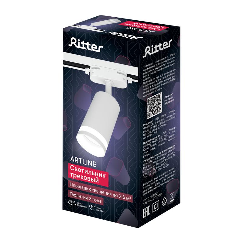Светильник трековый ARTLINE поворотный 55х55х100мм GU10 230В алюм./пластик. 4кв.м бел. Ritter 59879 8