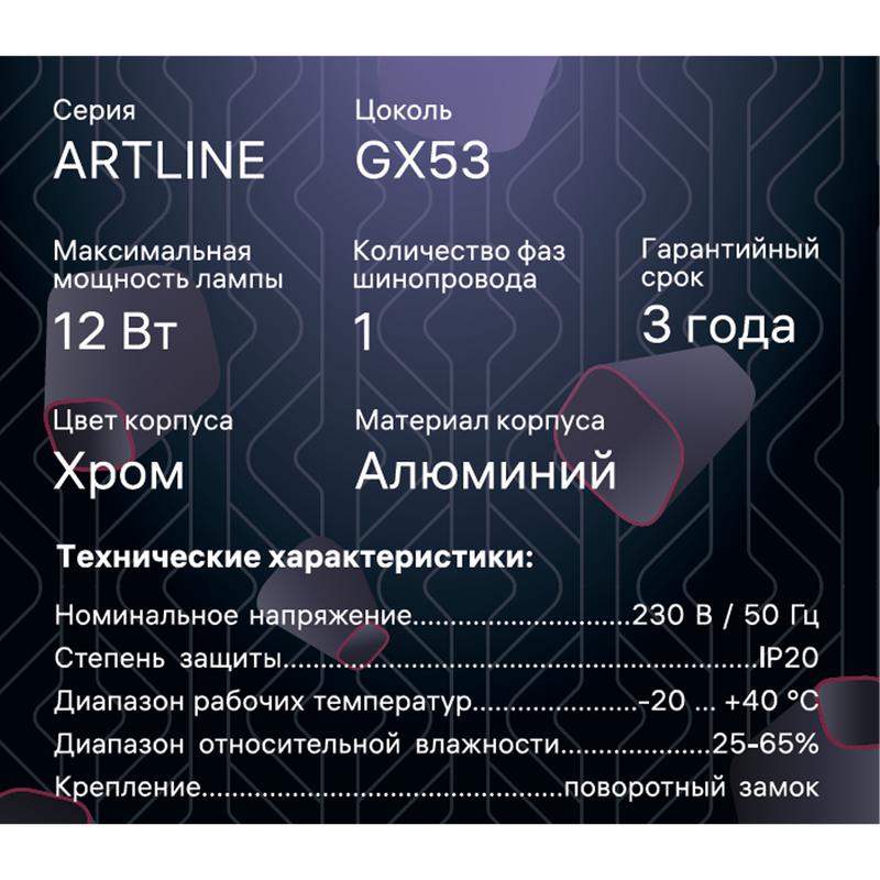 Светильник трековый ARTLINE поворотный 85х85х55мм. GX53 230В алюм. 4кв.м хром. Ritter 59859 0