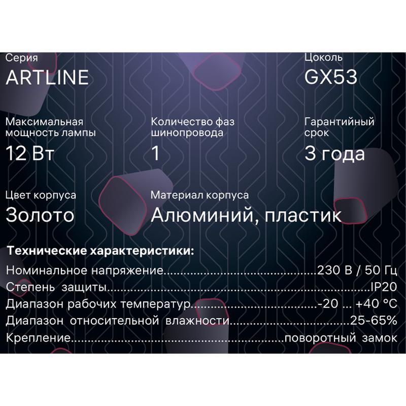 Светильник трековый ARTLINE поворотный 85х85х70мм GX53 230В алюм./пластик. 4кв.м зол. Ritter 59864 4