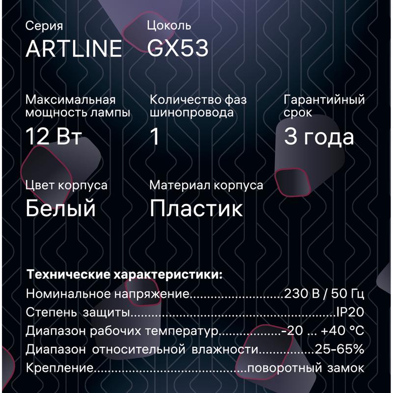 Светильник трековый ARTLINE поворотный шар 100х100х75мм GX53 230В пластик 4кв.м бел. Ritter 59925 2
