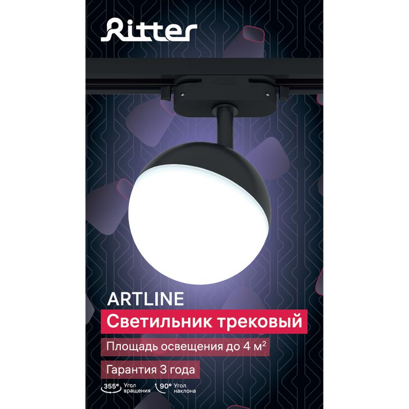 Светильник трековый ARTLINE поворотный шар 100х100х75мм GX53 230В пластик 4кв.м черн. Ritter 59926 9