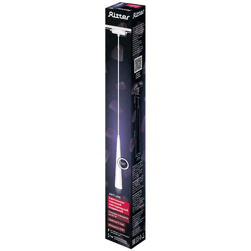 Светильник трековый подвес светодиодный ARTLINE 40х40х300мм 12Вт 960Лм 4000К 230В алюм. 6.4кв.м бел. Ritter 59712 8