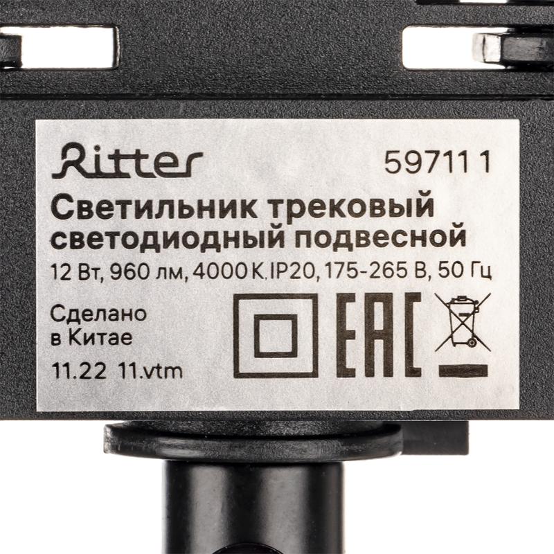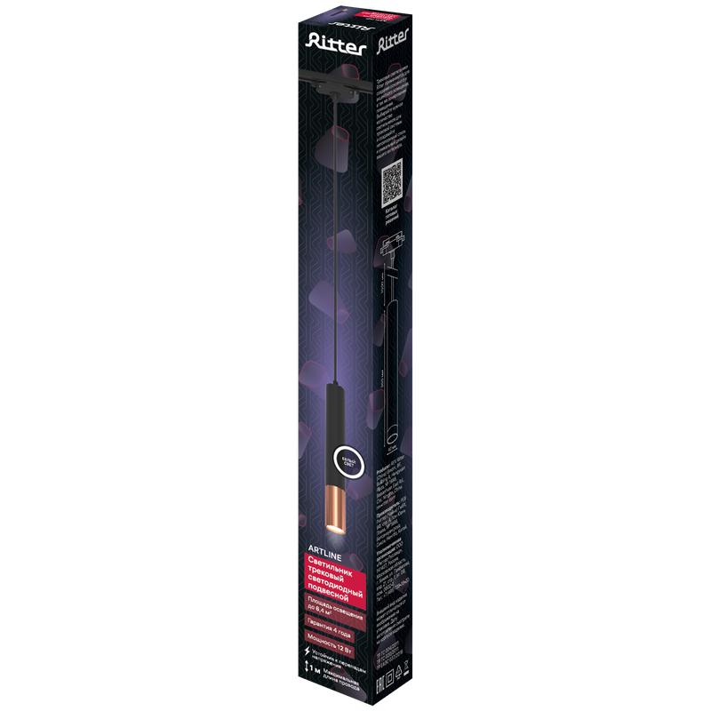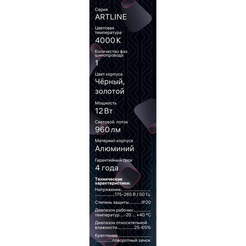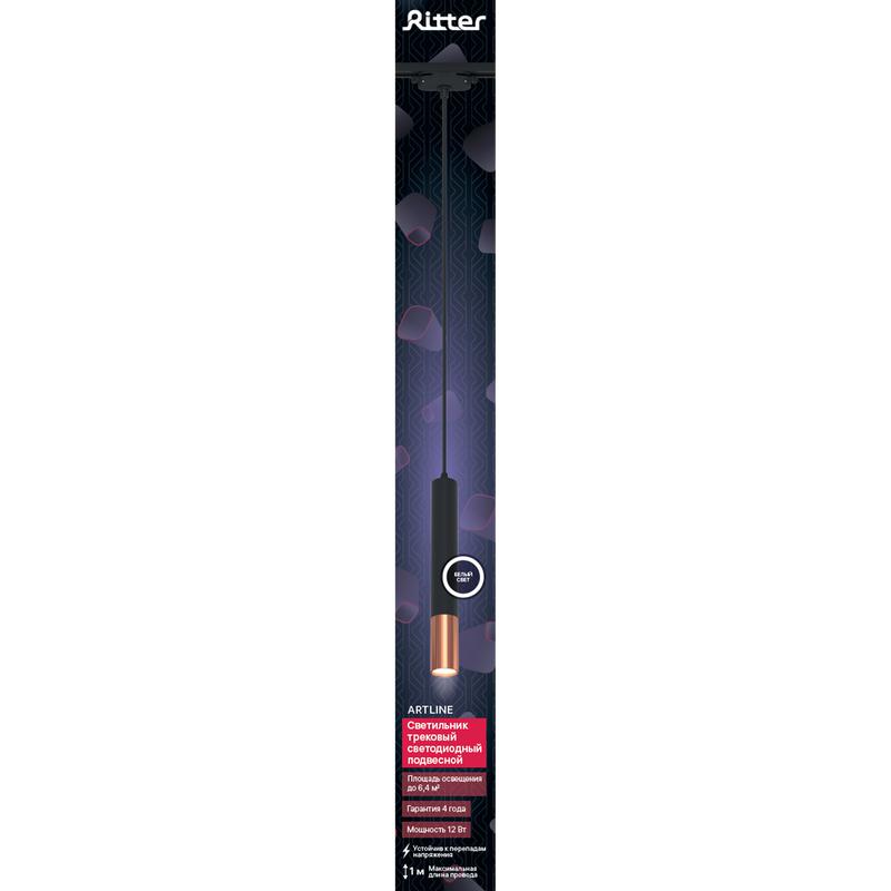 Светильник трековый подвес светодиодный ARTLINE 40х40х300мм 12Вт 960Лм 4000К 230В алюм. 6.4кв.м черн./зол. Ritter 59711 1