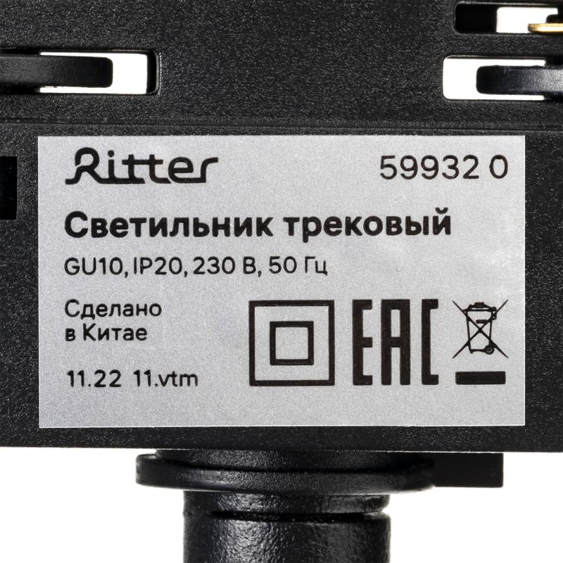 Светильник трековый поворотный ARTLINE 55х55х200 GU10 230В алюм. 2.6кв.м черн Ritter 59932 0