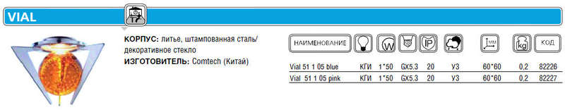 Светильник Vial 51 1 05 blue Комтех CH918059