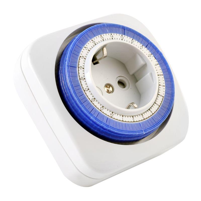 Электромеханический таймер с программированием на сутки предназначен для управления электробытовыми приборами, светом, различными медицинскими приборами, управления приборами для поддержания жизнедеятельности аквариумов и террариумов, создания эффекта присутствия хозяев в доме, управления электроприборами, работающими по ночам. Camelion BND-50/G5A (Таймер механический розеточный, 24-часовая программа, 230/3500Вт), размер 180х130х80мм, мощность 3500Вт. Точность хода: +/- 1 минута в сутки