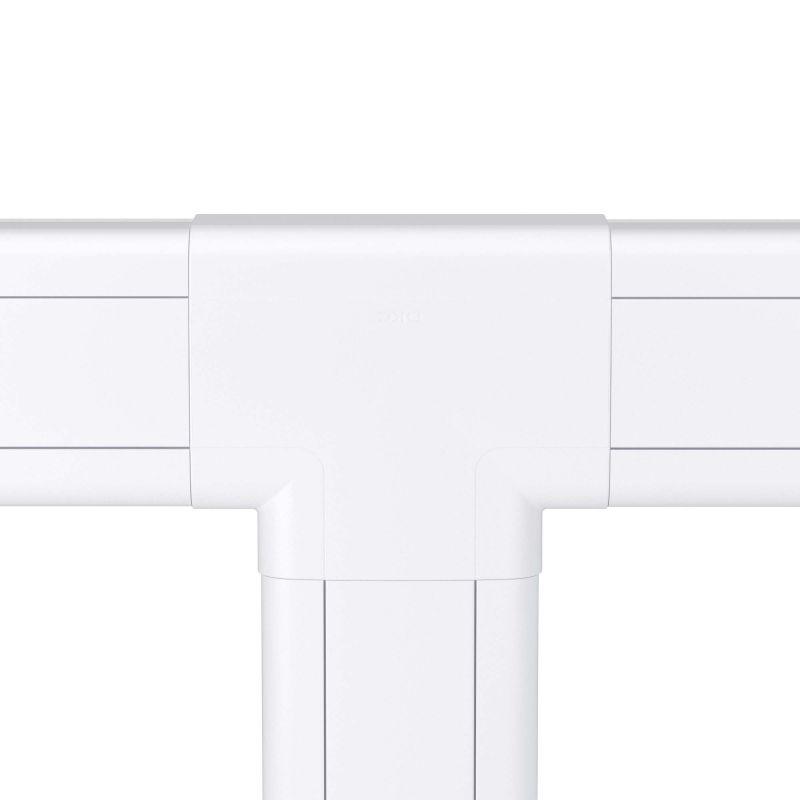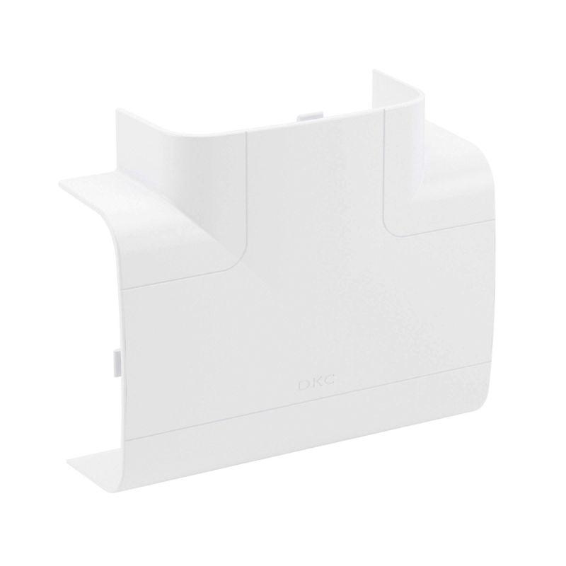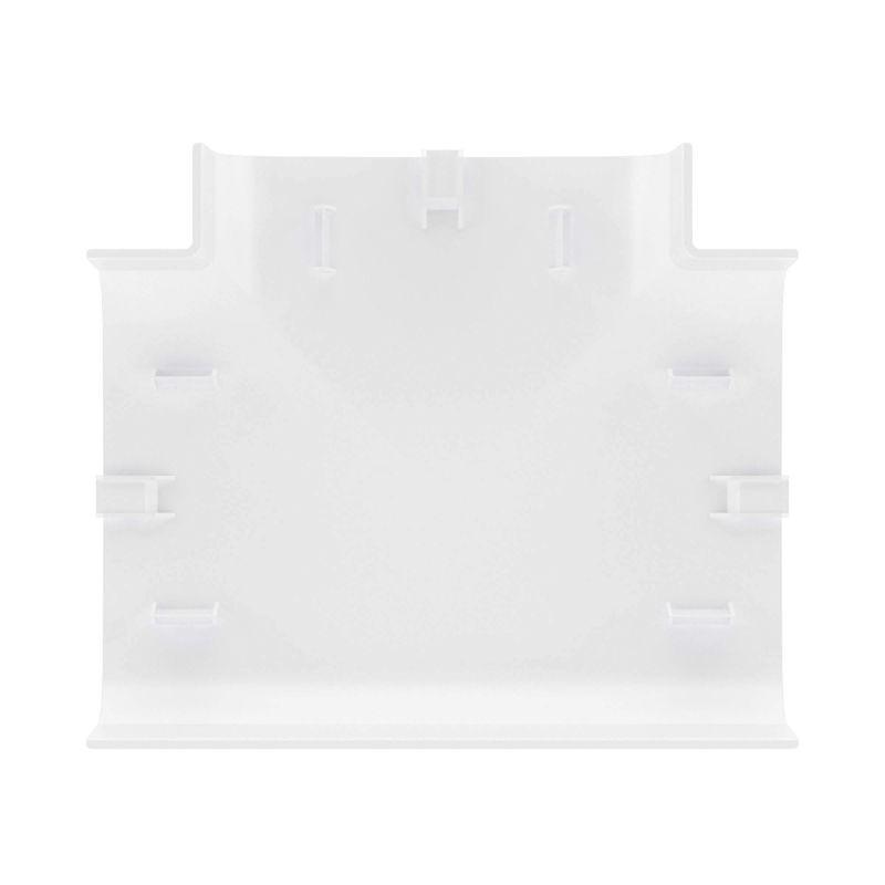 Тройник (Т-образный отвод). Назначение: декоративное оформление мест Т-образного соединения кабельных коробов. Характеристики: материал накладки – АБС-пластик; материал базы и разделителей – ПП. Комплект поставки: внешняя декоративная накладка; внутренняя база с разделителем. Типоразмер 110х50. Цвет белый