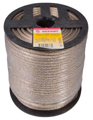 Стальной трос с полимерным покрытием используется для монтажа рекламных растяжек, систем освещения, новогодних конструкций и украшений. Применяется при организации ограждений, а также при оборудовании парников и теплиц. Предназначен для использования при статических нагрузках. Стальной трос свивается из высокоуглеродистой латунированной стальной проволоки и покрывается ПВХ, что обеспечивает устойчивость к воздействию влаги и пресной воды. ПВХ покрытие является экологически чистым и абсолютно безопасным материалом для человека и животных. Срок службы троса составляет более 25 лет (при отсутствии механических повреждений покрытия). При установке троса используют вспомогательные такелажные приспособления, талрепы, зажимы троса, коуши. Диаметр с покрытием: 5,0±0,1 мм. Диаметр без покрытия: 2,85-4,00 мм. Мин. разрывное усилие: 8 250 Н/825 кг.