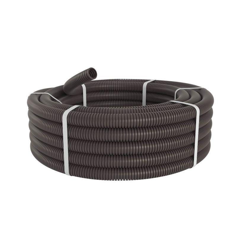 Трубы такого типа рекомендуется прокладывать в пустотах фальш-полов и фальш-потолков, по несгораемым и трудносгораемым основаниям (открыто), а также внутри корпусов оборудования и по ним. Трубы устойчивы не только к воспламенению, но и к воздействию ультрафиолета, а потому для их прокладки не надо организовывать особые условия, чтобы защитить их от воздействия солнечных лучей. В бухте - 100 метров. Диаметр трубы - 16 мм. Цвет трубы - темно-серый. ПВ-0. IP 67