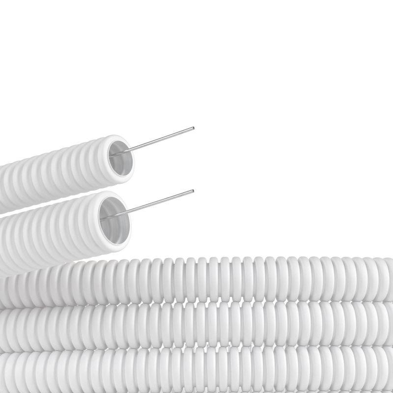 Безгалогеновые трубы изготовлены из специального полимера, который не выделяет вредных веществ при нагревании. Это их свойство делает такие трубы незаменимыми при строительстве и прокладке кабеля на объектах, предназначенных для пребывания большого количества людей - например, торгово-развлекательных центров, стадионов, концертных залов и т.д. Гибкая труба, не поддерживающая горение, имеет диаметр 20 мм. Для облегчения прокладки кабеля в комплект входит протяжка. Цвет - белый.