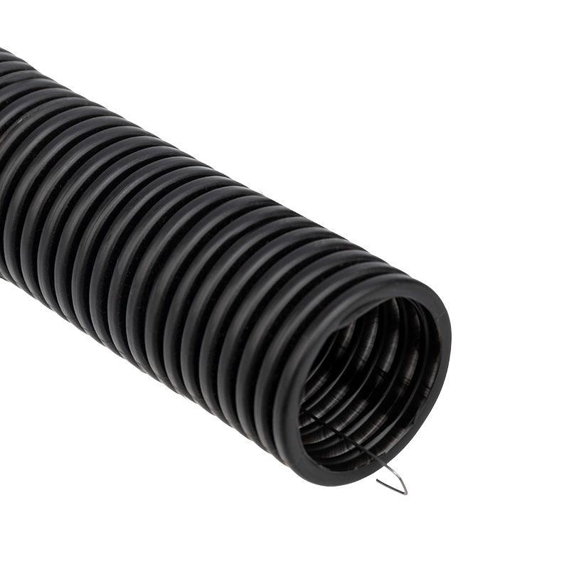 Гофрированная труба диаметром 32 мм используется для прокладки слаботочных и силовых электросетей, эксплуатируемых при напряжении переменного тока величиной до 1000 В, а также при прокладке компьютерных, телевизионных, телефонных и IT-сетей и коммуникаций. Применяется для скрытой и открытой прокладки в несущих и ограждающих конструкциях из несгораемых материалов жилых, административных и производственных зданий и сооружений. Подходит для защиты изолированных проводов и кабелей от механических повреждений и агрессивного воздействия окружающей среды при прокладке сложных систем и трасс. Рельефная конструкция трубы обеспечивает легкость монтажа, позволяет трубе выдерживать высокие нагрузки и предотвращает деформацию при изгибе. Наличие специальной металлической проволоки – зонда, позволяет быстро и легко прокладывать кабели и провода внутри трубы. Труба изготовлена из ПНД (полиэтилена низкого давления), благодаря чему отличается высокой коррозионной и химической стойкостью, повышенной морозостойкостью, устойчивостью к воздействию влаги и механическим нагрузкам. Длина трубы – 25 м, цвет – черный.