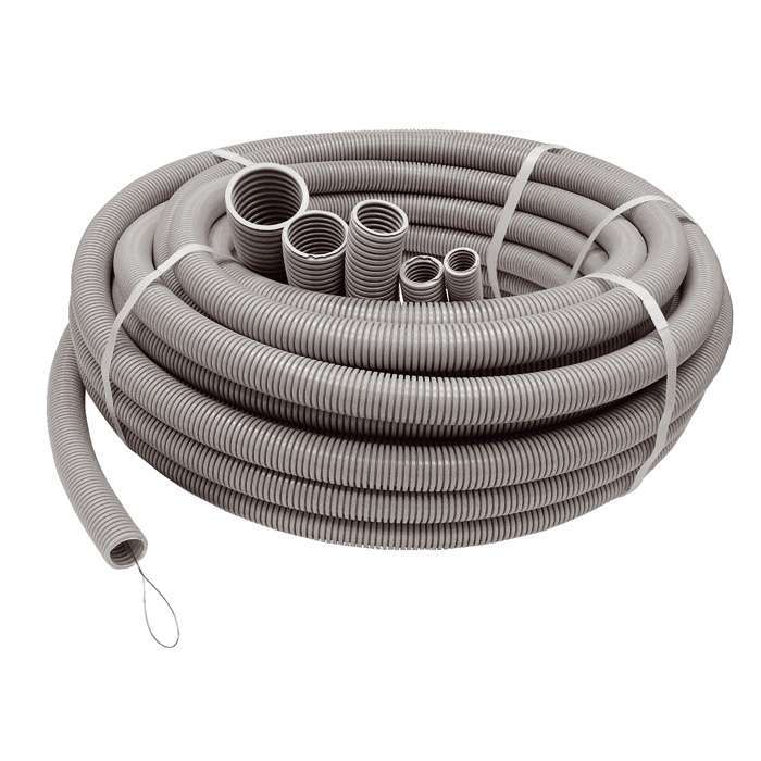 Труба ПВХ гофро с зондом d20 (20м) Рувинил 12001(20) представляет собой легкую гибкую трубу для кабельной проводки в помещениях как по по стенам (и в стенах), так и по потолкам (в потолках). Изготовлена из самозатухающего ПВХ и исключает возможность возгорания от короткого замыкания и распространения пламени по трубе. Механическая прочность составляет 350 Н на 5 см при температуре +20°С.