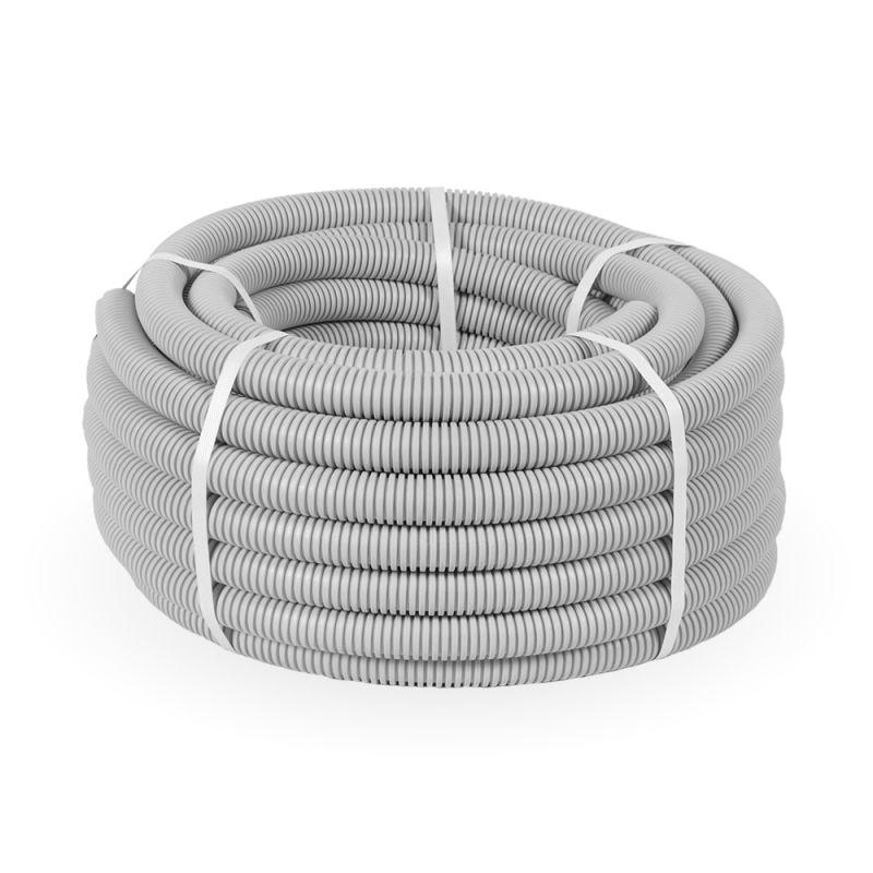Труба гофрированная ПВХ легкая d25мм с протяжкой 350 Н сер. (уп.50м) Промрукав PR.012531