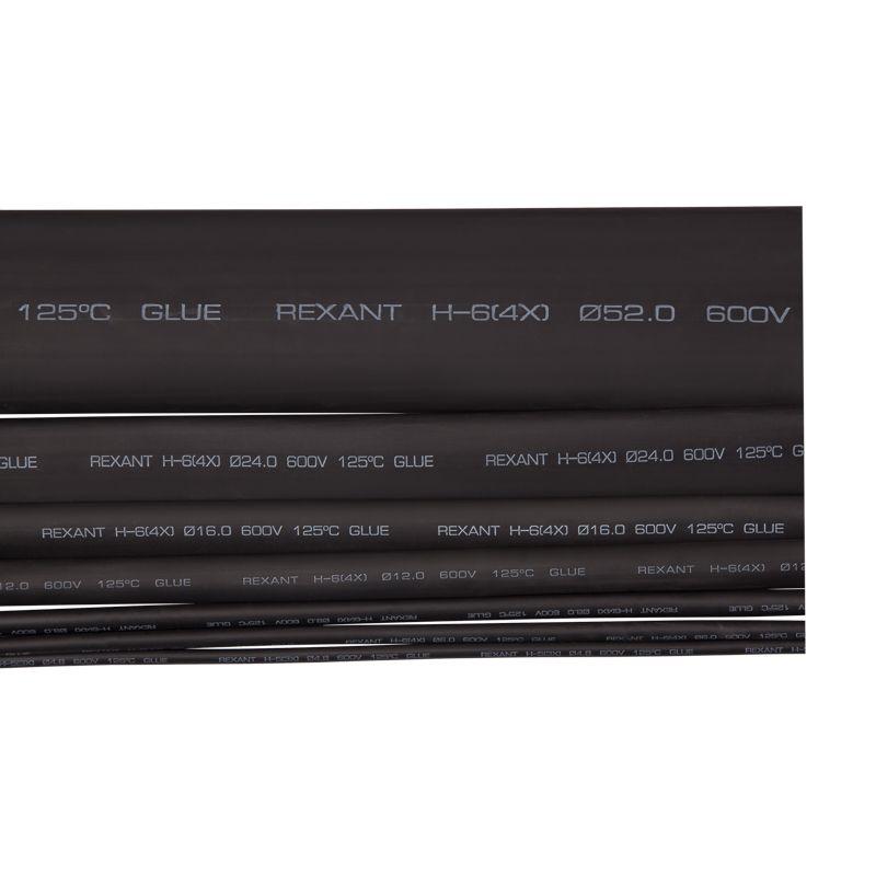 Термоусаживаемая трубка предназначена для восстановления и создания изоляции, герметизации поверхностей и электрических соединений кабелей, бандажирования и маркировки проводов, а также для создания антикоррозийных защитных покрытий. Термоусаживаемая трубка меняет свой диаметр в результате нагрева и принимает форму предмета или материала, на который совершается усадка. По всей длине внутренней стороны трубки нанесен клеевой слой. При нагреве клей расплавляется и заполняет пустоты, герметизирует и склеивает место стыка с объектом воздействия. Трубка не поддерживает горение: в отсутствие открытого огня затухает и не воспламеняется. Рекомендуем проводить работы по усадке трубок с помощью специальных электромонтажных фенов и газовых горелок REXANT. Гарантийный срок эксплуатации – 7 лет. Гарантийный срок хранения – 7 лет. Относительное удлинение при разрыве: не менее 200 %. Прочность на растяжение: не менее 10,4 Мпа. Электрическая прочность: не менее 19,7 кВ/мм. Рабочее напряжение: 600 В. Удельное электрическое сопротивление: 10^14 Ом/см.