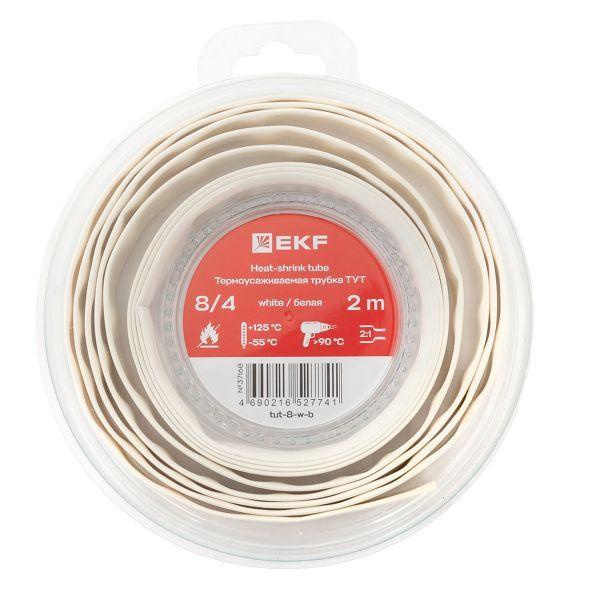 Трубка термоусадочная ТУТ нг 8/4 бел. ролик 2 м EKF tut-8-w-b