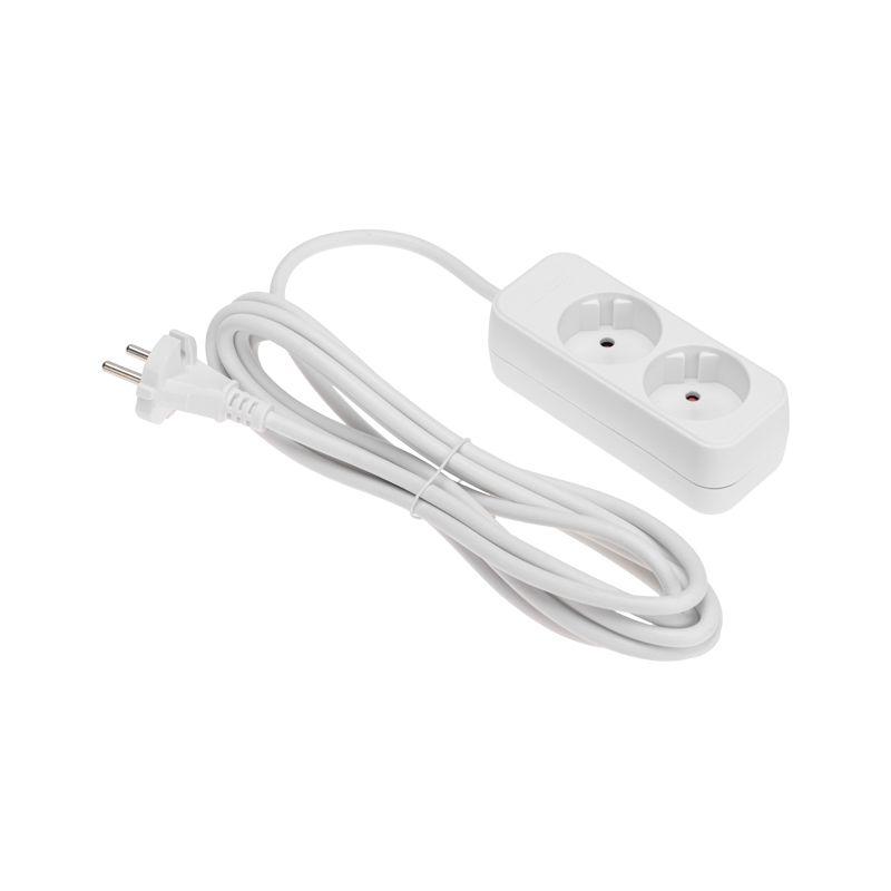Удлинитель REXANT предназначен для подключения электрических приборов, когда недостаточно стандартной длины шнура для питания от стационарных розеток. Наличие 2 гнезд позволяет одновременно подключить несколько электроприборов. Универсальные розетки обеспечивают возможность подключения вилок как российского, так и европейского стандарта. Удлинитель оснащен защитными шторками, которые предназначены для предотвращения случайного попадания пыли, влаги или посторонних предметов в гнезда удлинителя, что способствует долговечности самого устройства и подключенных к нему приборов, а также обеспечивает защиту от поражения электрическим током. Мощность – 2200Вт. Сечение провода – 2х1,0мм2. Тип вилки – прямая. Цвет удлинителя – белый.