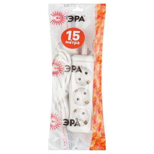 Удобный в применении бытовой удлинитель ЭРА UX-3e-1,5m с заземлением и удобной вилкой с кольцом. Длина шнура- 1,5 метра, 3 розетки. Позволяет подключать электроприборы с максимальной нагрузкой 10 А/ 2200 Вт. Этот надёжный и безопасный удлинитель изготовлен из негорючих материалов и имеет трёхжильный медный провод ПВС.