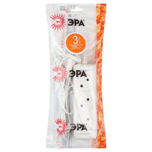 Бытовой удлинитель ЭРА UX-3-3m на 3 розетки, без заземления, с удлинённым проводом ШВВП 3 метра. Рассчитан для подключения простых бытовых приборов стандартной мощности. Максимальная нагрузка - 6 A/ 1300 Вт. Базовый белый цвет, аккуратный дизайн с закруглёнными углами. Для комфорта и безопасности гнёзда слегка "утоплены" в корпус. Изготовлен из надёжного полипропилена со специальными антипиренами, препятствующими горению.