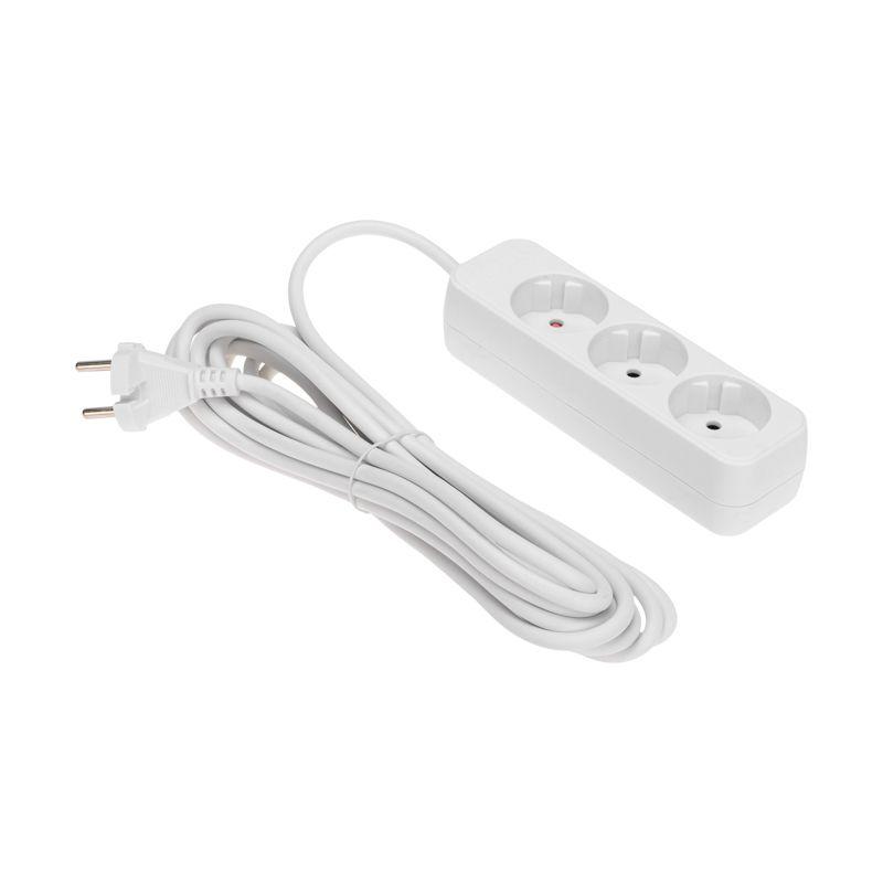 Удлинитель REXANT предназначен для подключения электрических приборов, когда недостаточно стандартной длины шнура для питания от стационарных розеток. Наличие 3 гнезд позволяет одновременно подключить несколько электроприборов. Универсальные розетки обеспечивают возможность подключения вилок как российского, так и европейского стандарта. Удлинитель оснащен защитными шторками, которые предназначены для предотвращения случайного попадания пыли, влаги или посторонних предметов в гнезда удлинителя, что способствует долговечности самого устройства и подключенных к нему приборов, а также обеспечивает защиту от поражения электрическим током. Мощность – 2200Вт. Сечение провода – 2х1,0мм2. Тип вилки – прямая. Цвет удлинителя – белый.