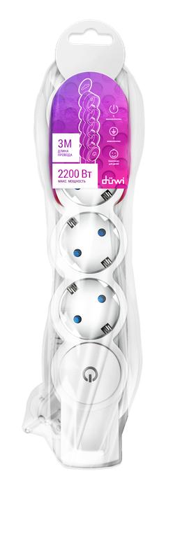 Удлинитель 4х3м с заземл. 10А IP20 ПВС 3х0.75 с выкл. защ. шторки REV 32014 4