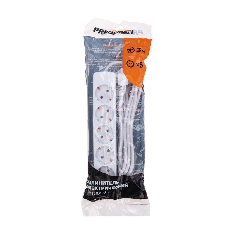 Удлинитель PROconnect предназначен для подключения электрических приборов и электроинструментов. Используется, когда стандартной длины шнура недостаточно для питания от стационарных розеток. Наличие 5 гнезд позволяет одновременно подключить несколько электроприборов. Универсальные розетки обеспечивают возможность подключения вилок как российского, так и европейского стандарта. Заземление защищает от поражения электрическим током и повышает безопасность при использовании. Угловая форма вилки облегчает подключение в ограниченном пространстве и уменьшает износ кабеля. Мощность – 1300 Вт.