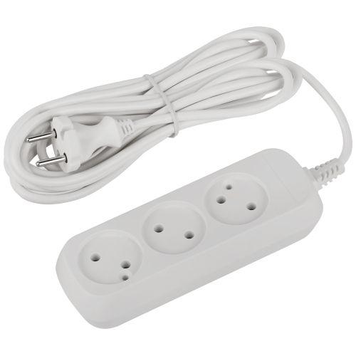 Удлинитель электрический Эра GREENLINE UDL-10-350 без заземления, на 3 розетки, провод 5м ПВС 2x0,75мм2. Рассчитан на максимальную мощность 10А/2200 Вт. Удлинитель станет Вашим надежным помощником, если любимые электроприборы находятся далеко от розеток. Корпус выполнен из ударопрочного и негорючего пластика (полипропилен). Модель удлинителя на 10А позволяет подключать бытовые приборы общей нагрузкой до 2200Вт.