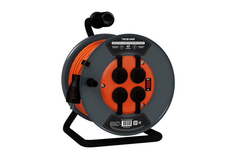 Удлинитель на метал. катушке 4х40м с заземл.16А IP44 ПВС 3х2.5 с выкл. медь TOKOV ELECTRIC TKP-SK40-325-Z