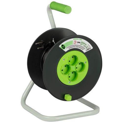Удлинитель силовой ЭРА GREEN LINE на пластиковой катушке KAT-2x0.75-15m, 4 розетки без заземления. Провод ПВС 2х0,75мм2, 15м. Мощность 6А/1300Вт. Используется для работы на строительных площадках или дачных участках. Удобен при работе с приборами, находящимися удаленно от стационарной розетки. Например, газонокосилки, электрические, пилы, триммеры или электродрели. Рама катушки сделана из высокопрочной стали, а пластиковой корпус катушки выполнен с применением негорючих добавок.