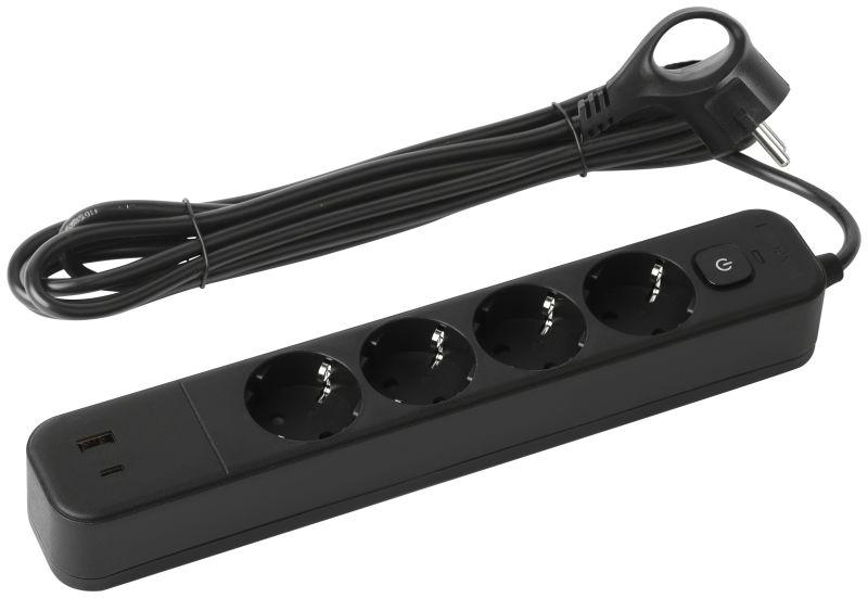 Сетевой фильтр ЭРА USF-4es-3m-2xUSBAC-B с заземлением, с выключателем, 4 розетки, 2USB, провод 3м, ПВС 3x0,75мм2. Базовый уровень защиты техники: от импульсных помех, от перегрузки, от короткого замыкания. Максимальная мощность 10А/2200 Вт. Корпус из негорючего пластика (полипропилен). Вилка обеспечена кольцом для удобного извлечения ее из розетки. Выключатель со световой индикацией позволяет выключить все приборы, подключенные к сетевому фильтру, не вынимая вилки из розетки. Отлично подойдет для защиты бытовой и компьютерной техники. Сетевой фильтр оснащен 2USB для зарядки мобильных устройств.