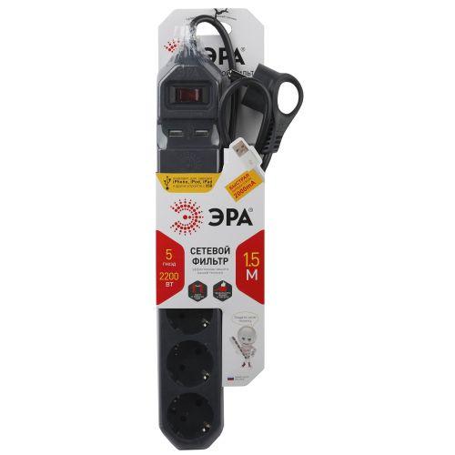 Сетевой фильтр ЭРА USF-5es-1.5m-USB-B позволяет одновременно подключить несколько единиц компьютерной или другой техники, зарядить телефон и планшет. Сетевой фильтр ЭРА с защитой от перегрузки сети, короткого замыкания, с фильтрацией импульсных помех станет незаменимым помощником в современном доме. Техника и гаджеты останутся целы, даже при больших скачках напряжения. Сетевой фильтр имеет 5 розеток и 2 USB-порта мощностью 2.1 А для возможности быстрой прямой подзарядки мобильных устройств. На корпусе расположена клавиша быстрого выключения устройства, что особенно удобно в случае необходимости экстренного отключения от сети. Приятным бонусом выступает наличие специального кольца на вилке. Сетевой фильтр может использоваться как удлинитель. Длина провода составляет 1.5 м, чего вполне достаточно для работы в пределах комнаты. Удобство и функциональность сетевого фильтра ЭРА будут высоко оценены жителем современного мегаполиса. Сетевые фильтры ЭРА разрабатываются собственным техническим бюро, проходят проверку на всех этапах производства, что обеспечивает высокое качество продукта.