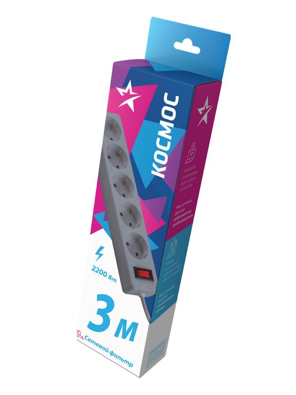 Серый сетевой фильтр 3м на 5 гнезд с двумя защитами для гаджетов и дорогой техники – варистор для защиты от «плохого» тока и терморазмыкатель для защиты от перегрузки и замыкания в сети. Сзади специальное крепление – можно повесить на стену. Корпус из негорючего полипропилена, 100% медный кабель ПВС 3х0,75мм (с заземлением). Контактная группа из латуни не деформируется со временем. Максимальная мощность подключения 2200Вт – хватит для нескольких устройств одновременно. 5 лет гарантии