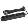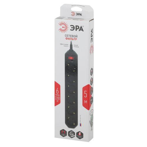 Сетевой фильтр ЭРА USF-6es-5m-B рассчитан на одновременное подключение большого количества техники. На корпусе расположены 6 розеток с заземлением. Отличительной особенностью модели выступает прочный корпус из негорючего полипропилена, надежный трехжильный провод, терморазмыкатель на 10А, который защищает приборы от перегрузки. На корпусе расположена кнопка выключения. Сетевой фильтр разработан собственными инженерами компании ЭРА, проходят проверку на всех этапах производства, гарантируя высокое качество его исполнения. Длина провода модели составляет 5 метров. Удлинитель удобно использовать в пределах одной комнаты. Сетевой фильтр имеет кольцо на шнуре, благодаря чему прибор можно быстро выдернуть из сети.