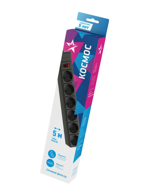 Высокомощный черный сетевой фильтр 5м на 6 гнезд - лучший выбор для домашнего медиацентра. Две защиты для гаджетов и дорогой техники – варистор для защиты от «плохого» тока и терморазмыкатель для защиты от перегрузки и замыкания в сети. Корпус из негорючего полипропилена, 100% медный кабель ПВС 3х1мм (с заземлением). Контактная группа из латуни не деформируется со временем. Максимальная мощность подключения 3500Вт – хватит для целого ряда мощных устройств одновременно. 5 лет гарантии