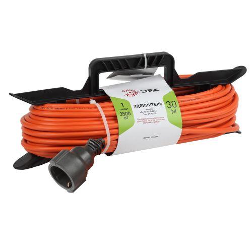 Удлинитель силовой на рамке UFx-1e-3x1.5-30m с заземлением, ПВС 3x1,5м2, 1 розетка, 30м, степень защиты IP20. Мощность 16А/3500Вт. Используется для работы на строительных площадках или дачных участках. Удобен при работе с приборами находящимися удаленно от стационарной розетки. Например, газонокосилки, электрические, пилы, триммеры или электродрели. Провод в удлинителях Эра сделан из 100% меди, что делает его абсолютно пожаробезопасным. Рама-полипропилен.