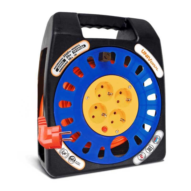 Удлинитель в закрыт. корпусе 4х20м с заземл. 16А IP20 У16-012 ПВС 3х1 термозащита защ. шторки UNIVersal 1673