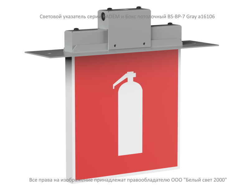 Световой указатель BS-RADEM-71-S1-INEXI2 Gray имеет расстояние распознавания 30 метров. Световой указатель предназначен для обозначения мест размещения средств пожарной защиты, пожарных гидрантов, пожарных кранов и огнетушителей, мест размещения аптечек первой помощи, а также знаков доступности для маломобильных групп населения.. Совместимая серия знака безопасности BL-1515. Модель имеет постоянный режим работы, нормируемая продолжительности аварийной работы 1 ч. Номинальная потребляемая мощность 4,20 Вт. Класс защиты от поражения электрическим током: II Поддерживается тестирование и управление: Кнопка "Тест", TELECONTROL Материал корпуса сталь, порошковая эмаль Материал рассеивателя полиметилметакрилат Степень защиты от внешних воздействий IP40 Монтаж светового указателя: Крепление на поверхности стен с помощью входящего в комплект стандартного кронштейна. Крепление к потолку с помощью кронштейна BS-K-8 и шпилек М8 необходимой длины, в комплект поставки не входит. Крепление к потолку с помощью в штанги BS-SH-5, в комплект поставки не входит. Встраивания в подвесные потолки типа «Армстронг» или в гипсокартон c помощью потолочного бокса BS-BP-7, в комплект поставки не входит. Крепление к стене боковой поверхностью c помощью кронштейна BS-K-7, в комплект поставки не входит. При проектировании и монтаже нужно учитывать, что световой указатель, кроме моделей с рабочим напряжением = 24 В, имеет выносной блок питания и требует пространства для его установки.
