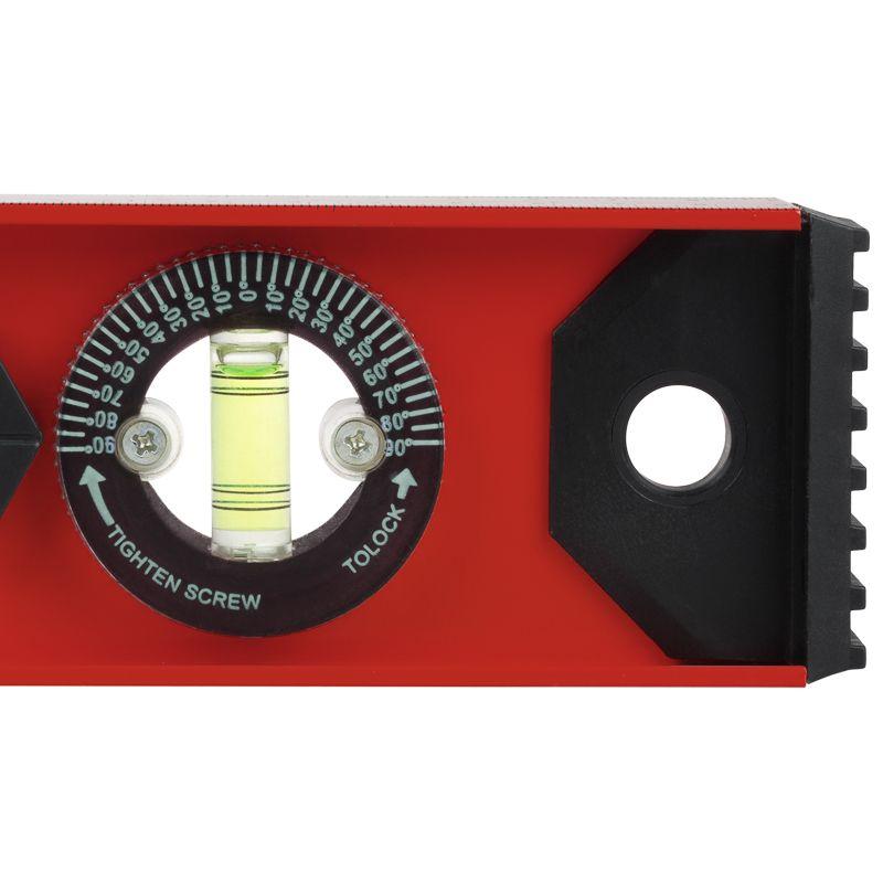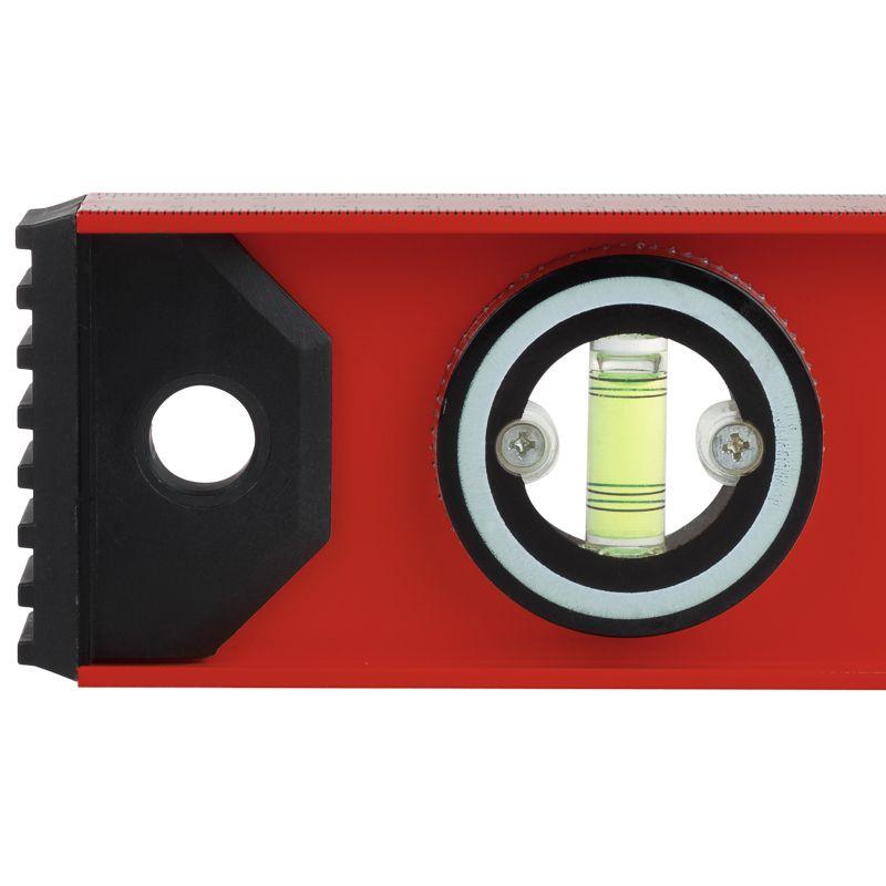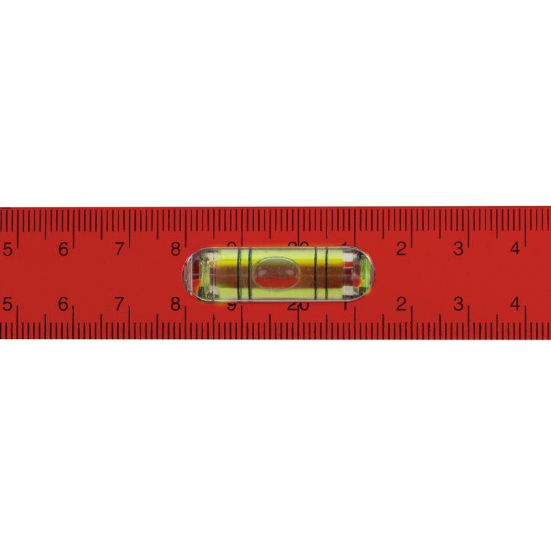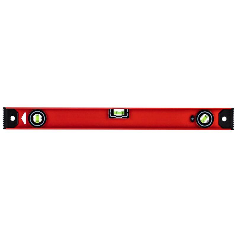 Уровень алюминиевый Рельс 600 мм используется для выверки отклонений горизонтальных и вертикальных поверхностей, а также для измерения градуса отклонения поверхности от горизонтальной плоскости. Уровень изготовлен из жесткого двутаврового алюминиевого профиля. Модель оснащена тремя пузырьковыми глазками для проверки отклонений по горизонтали и вертикали. Один из глазков – поворотный, что позволяет использовать уровень для выставления произвольных углов. На одной из сторон уровня нанесена разметка для использования инструмента в качестве линейки. Пластиковые заглушки на торцах уровня защищают конструкцию от повреждений при случайных падениях.