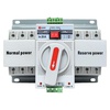 Устройство АВР EKF предназначено для обеспечения резервным электроснабжением нагрузки, подключенной к системе электрообеспечения, имеющей основной и резервный вводы. Устройство АВР автоматически подключает резервную линию питания в случае исчезновения напряжения на основной линии. Предназначен для трехфазных четырехпроводных (или однофазных однопроводных) систем двойного энергопитания переменного тока с частотой 50/60 Гц, номинальным напряжением 400 В/230 В и номинальным током до 63А. Устройство выполнено в виде моноблока и состоит из блока управления и двух модульных автоматических выключателей. На блоке управления имеется рычаг ручного переключения. Такая конструкция позволяет уменьшить габариты и площадь установки АВР.