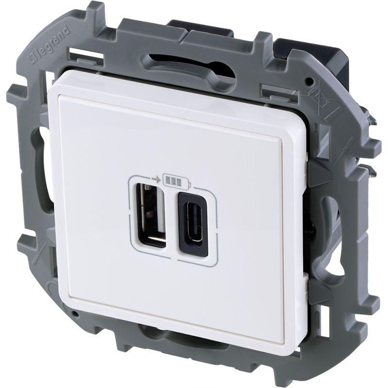 Зарядное устройство Legrand Inspiria для скрытого монтажа , тип А-тип С, цвет "Белый". Напряжение ~240В/=5В, максимальный зарядный ток 3000 мА. Применяется для непосредственной зарядки одного или двух мобильных устройств - смартфонов, планшетов, умных часов, фитнес-трекеров и т.д. Оснащно разъемами двух стандартов для поддержки все Особенности изделия: - Увеличенный до 3000мА зарядный ток способствует сокращению времени заряда мобильных устройств. - Разьемы двух стандартов - классический тип А и современный реверсивный тип С для максимальной гибкости и совместимости с любыми гаджетами. - Возможна одновременная зарядка двух устройств - Стандартное подключение к электросети двумя проводами (фаза и нейтраль) позволяет легко заменить стандартную электрическую розетку - Подсоединение проводов электросети с помощью винтовых клемм.